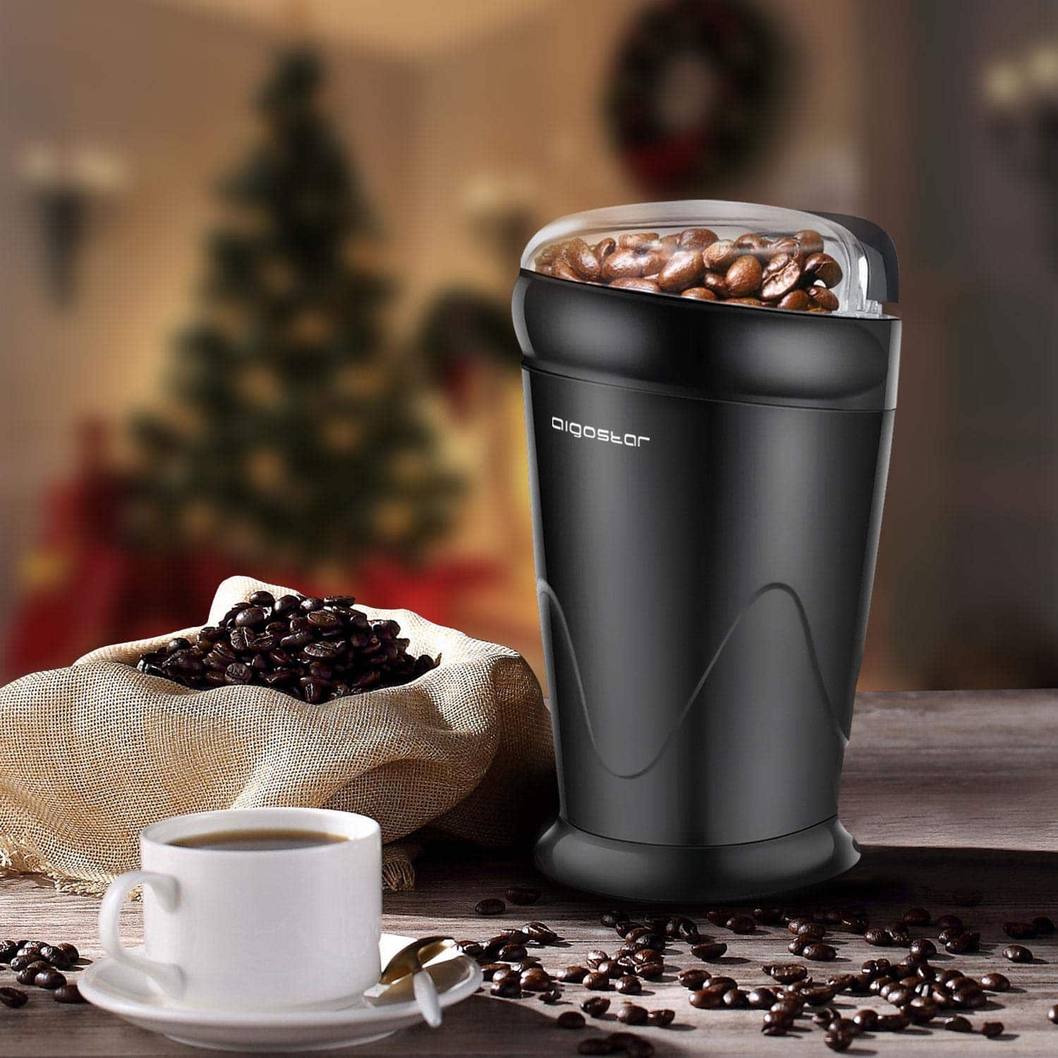 Aigostar Moulin à Café Électrique, Moulin à Épices Avec Lame En Acier Inoxydable, Moulin Multifonctionnel pour Moudre Grains à Café, Épices, Graine, C